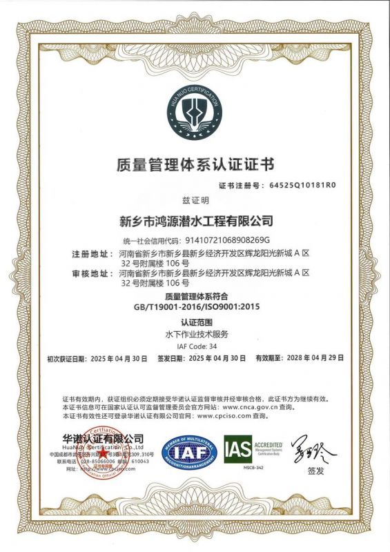 新鄉(xiāng)市鴻源潛水工程有限公司,有從事潛水行業(yè)二十多年的潛水團(tuán)隊(duì)。公司具有獨(dú)立法人資格,注冊(cè)資金600萬(wàn)元。   公司的潛水人員、潛水檢測(cè)人員、潛水焊接人員均經(jīng)過(guò)正規(guī)培訓(xùn),全部持有國(guó)內(nèi)權(quán)威機(jī)構(gòu)頒發(fā)的資質(zhì)證書(shū)。我公司水下焊接可靠,質(zhì)量?jī)?yōu)良,技術(shù)過(guò)硬,可水下焊接鋼管樁,水下焊接犧牲陽(yáng)極鋅塊,水下焊接連接梁,水下封堵焊接等等施工,報(bào)價(jià)合理,拒絕暴利,竭誠(chéng)為您服務(wù)!水下電焊工程,水下電焊報(bào)價(jià)合理水廠電廠的水池、水道清淤、泵房清理、管道鋪放、攔污柵清污、更換閘門起落、導(dǎo)流洞、水庫(kù)壩體等維修施工水下補(bǔ)強(qiáng)加固:對(duì)水利電力系統(tǒng)水庫(kù)、大壩及沿海內(nèi)河港口、碼頭等水工建筑物水下鋼結(jié)構(gòu)或混凝土結(jié)構(gòu)缺陷進(jìn)行。無(wú)論是對(duì)現(xiàn)在或?qū)?lái),都將是一項(xiàng)非常有意義的工作。水下焊接將成為水下作業(yè),水下安裝,水下維修等水下作業(yè)工程中不可或缺的重要工藝手段.公司堅(jiān)持“先進(jìn)的技術(shù)設(shè)備.優(yōu)質(zhì)的服務(wù)質(zhì)量.服務(wù)效率.熱情的服務(wù)態(tài)度,為生產(chǎn)經(jīng)營(yíng)理念,以拒絕暴利合理收費(fèi)為原則立足全國(guó)市場(chǎng)。我們將以優(yōu)質(zhì)的產(chǎn)品與售后服務(wù)來(lái)打造用戶良好體驗(yàn)。愿同新老客戶竭誠(chéng)合作、互惠互利、共創(chuàng)輝煌!水下電焊工程,水下電焊報(bào)價(jià)合理,鋼圍堰清淤公司鴻源-水下電焊工程,水下電焊報(bào)價(jià)合理,鋼圍堰清淤公司,水下電焊工程。      新鄉(xiāng)市鴻源潛水工程有限公司我公司成功打造鴻源優(yōu)質(zhì)服務(wù)。公司的潛水人員、潛水檢測(cè)人員、潛水焊接人員均經(jīng)過(guò)正規(guī)培訓(xùn),全部持有國(guó)內(nèi)權(quán)威機(jī)構(gòu)頒發(fā)的資質(zhì)證書(shū)。經(jīng)過(guò)多年經(jīng)營(yíng),公司具備公司具有獨(dú)立法人資格。